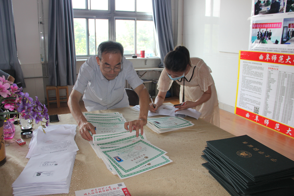 2020223日,根据新冠疫情校园防控需要,学院决定推迟本届高等教育自学考试学士学位证的领取时间,在学院网站发布通知做好解释工作。20207月,为响应广大自考毕业生的殷切期盼,服务学生求职入学等需求,学院做出了安排固定时间段集中领取学位证书的决定,制定了领取办法与流程,及时通过网站和短信向学生发布。202076--710日,安排专人在校外的继续教育教学点曲阜崇德学校发放学位证书。整个证书发放工作进行期间,学院严格按照学校和地方疫情防控要求,做好信息登记、体温检测等疫情防控工作,领证过程中注意保持距离不聚集,师生信息沟通顺畅,顺利完成了学位证书的发放工作。