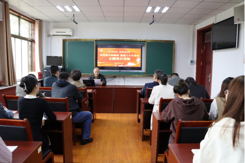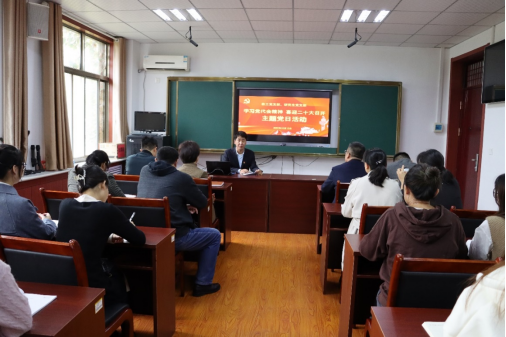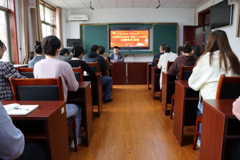 首先,学校第九次党代会代表何爱霞教授为全体党员做了《中国共产党探花