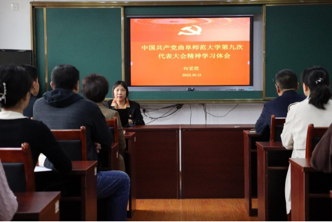 第九次代表大会精神学习体会》的报告,何教授从学校第九次党代会的“总体情况、大会主题、党委报告核心内容、纪委报告核心内容”四个方面做了详细阐述,言简意赅、画龙点睛,使全体党员对党代会的精神有了更新更深更全面的认识与理解。她指出:大会气氛热烈,庄严隆重,主题鲜明,邢光书记作的《强化特色 追求卓越 为建设世界知名的高水平孔子家乡大学不懈奋斗》的报告高屋建瓴、立意高远,对过去的总结全面翔实、客观公正,对未来的规划目标明确、重点突出、路径可行。我们每位曲园人都应不忘初心、牢记使命,踔厉奋发、勇毅前行,为学校高质量发展贡献自己的力量,以优异成绩迎接党的二十大胜利召开。
