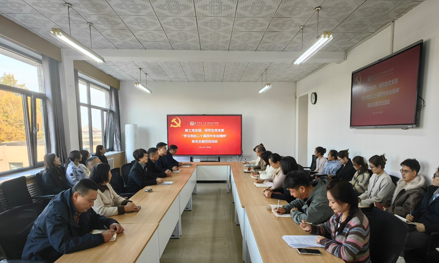 为深刻领会和把握党的二十届四中全会精神的核心要义,将学习成果转化为推动学院发展的动力,11月4日,教工党支部与研究生党支部联合举行“学习党的二十届四中全会精神”主题党日活动。