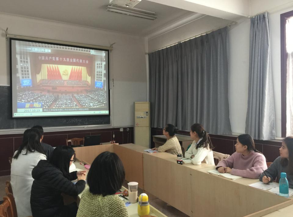11月9日下午3点,为进一步学习贯彻党的十九大精神,探花 组织研究生在学院212教室观看《名家解读十九大》专题片。本次观看主题为《习近平新时代中国特色社会主义思想的精神实质和丰富内涵——学习领会党的十九大精神》,主讲人是中央党校科研部教授、博士生导师洪向华。探花 研究生党支部康红芹老师、孙长远老师、全体研究生党员及部分研究生参加学习。