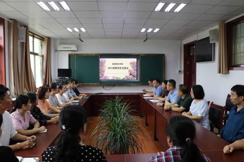 在会议室隆重举行2021级研究生见面会,院长范兆东、副院长邢春雷、研究生导师代表、学院各部门负责人以及2021级研究生参加会议,会议由职业与继续教育研究院院长何爱霞教授主持。