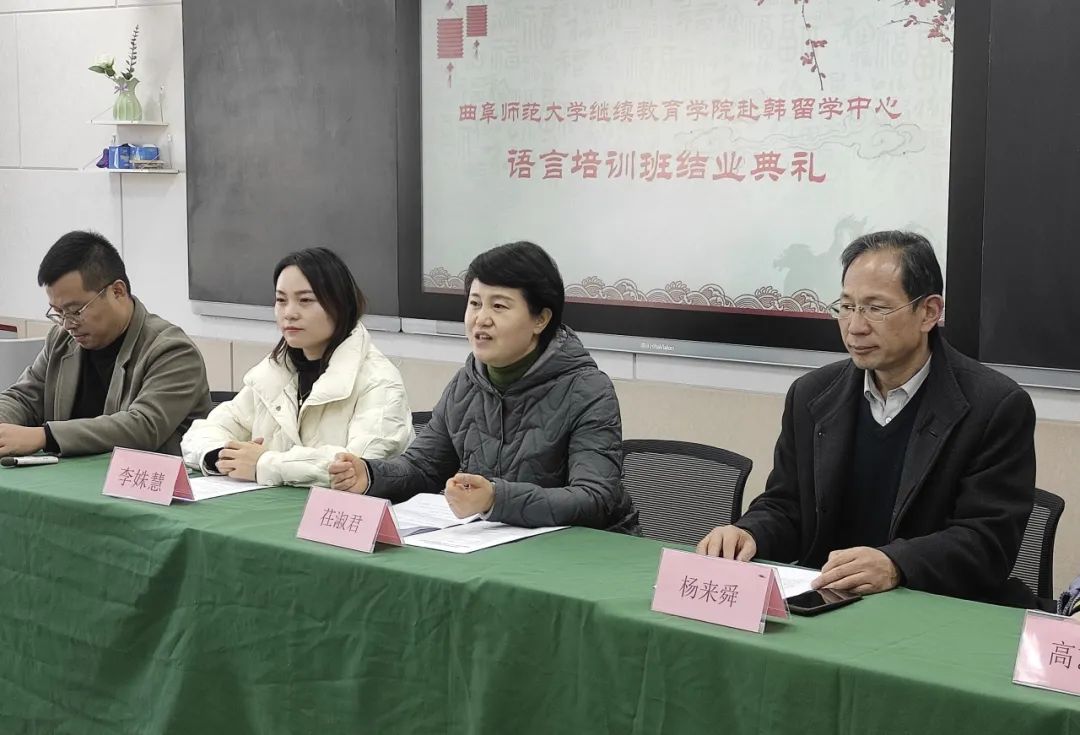 2023年12月1日上午,学院韩国留学项目23年第二期语言培训班结业典礼在日照校区教学楼B楼402教室举行。学院党总支书记茌淑君、培训部部长杨来舜、赴韩留学中心项目负责人及相关工作人员以及语言培训班的21名学生一同参加。