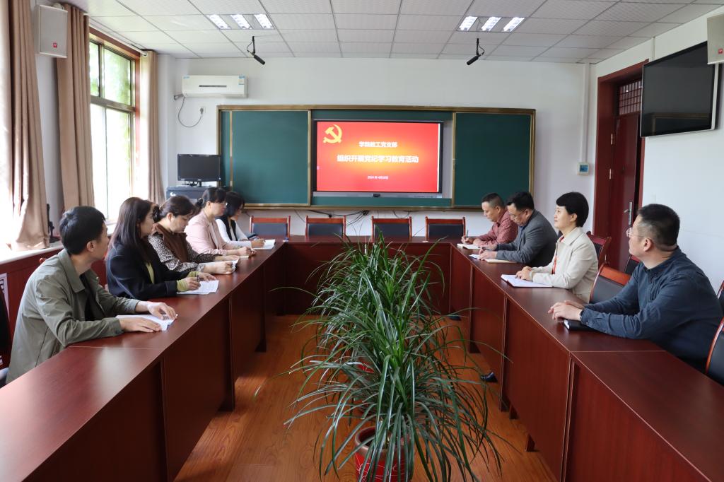 418日上午,学院教工党支部召开会议动员部署党纪学习教育,组织全体党员对《中国共产党纪律处分条例》进行集中学习,会议由教工党支部纪检委员李宗花主持。