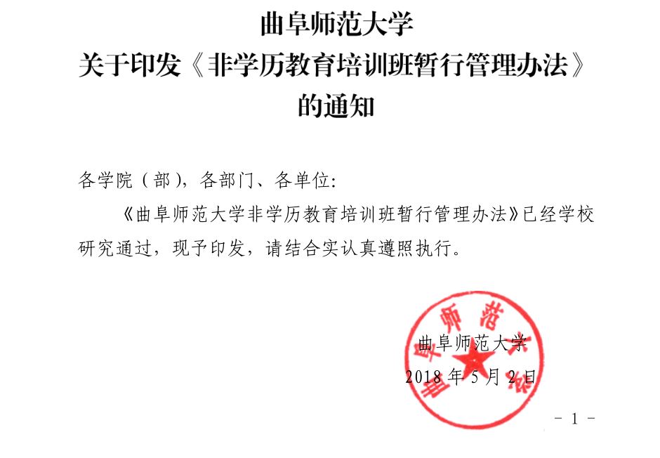 曲师大校字[2018]21号 关于印发《非学历教育培训班暂行管理办法》的通知27.pdf