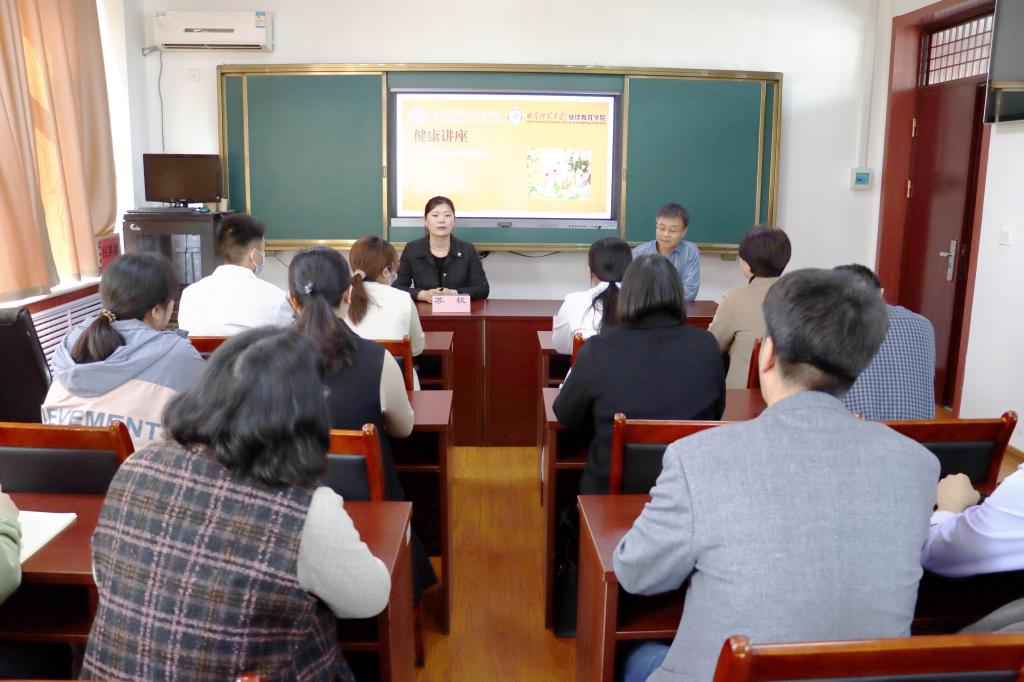 联合曲阜远东职业技术学院健康管理系在学院会议室共同开展“关爱健康,远离疾病”健康知识讲座。学院全体教职工和研究生参加,由学院工会主席董晓勇主持。