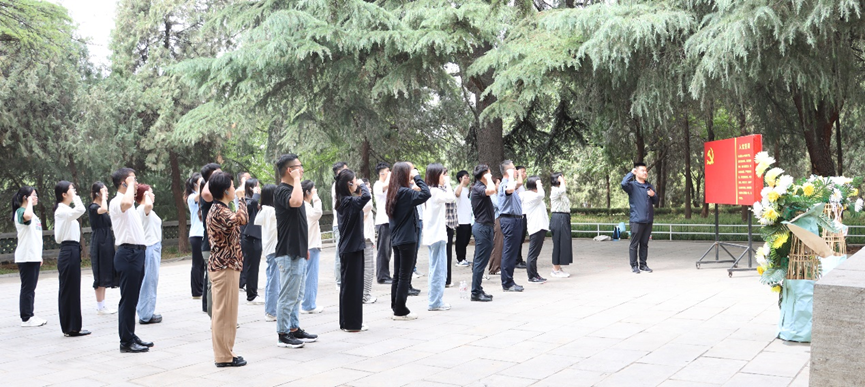 在羊山战役烈士公墓前,党总支书记茌淑君代表党员敬献花篮,全体党员肃立默哀,鞠躬致敬,并重温入党誓词,再一次坚定对党忠诚、为党的事业奋斗终身的决心。在鲁西南战役纪念馆,一幅幅扣人心弦的图片、一件件饱经战火的珍贵文物、一桩桩令人潸然泪下的英勇事迹,生动展现了从刘邓大军抢渡黄河,到以羊山战役胜利结束为标志的鲁西南战役的全过程,让大家切身感受了革命先烈艰苦奋斗、浴血奋战的崇高革命精神。党员们纷纷表示深受震撼和感动,“以前只在历史书上学过,今天参观纪念馆身临其境,是一次深刻的历史教育和精神洗礼”。