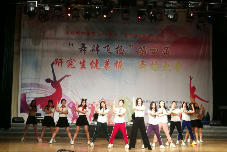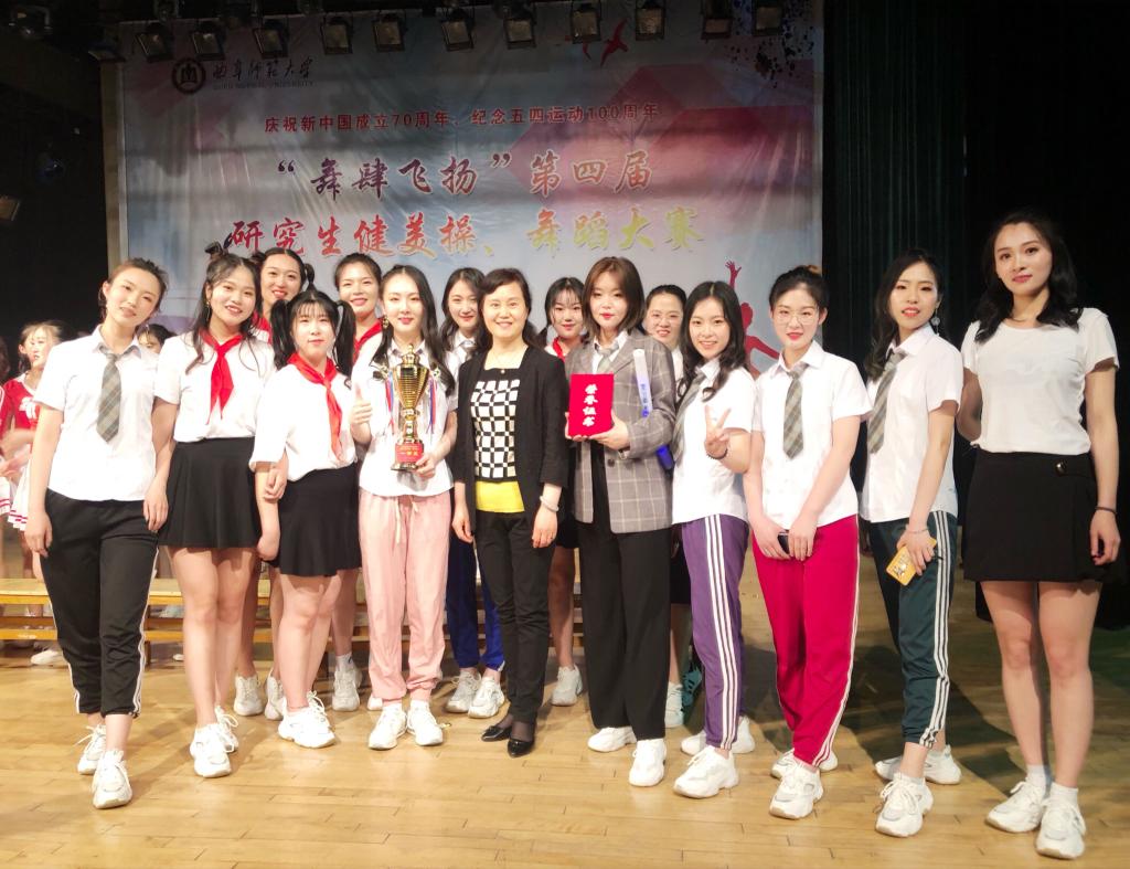 研究生在人数较少的情况下,仍积极组织参赛,同学们从舞蹈创新上集思广益、克服困难,利用课余时间编排舞蹈、刻苦训练,学院党总支副书记茌淑君在排练现场亲自指导,最终在老师与同学们共同努力下取得了优异的成绩。