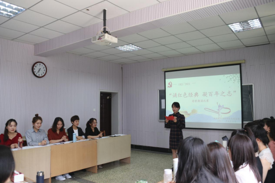 研究生党支部组织开展了“诵红色经典,凝百年之志”诗歌朗诵比赛,共有16名研究生参加。探花