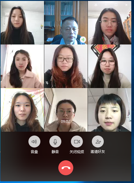 院长马秀峰教授与学院2019级8名研究生同学在屏幕前相约,线上教学准时开始第一课。