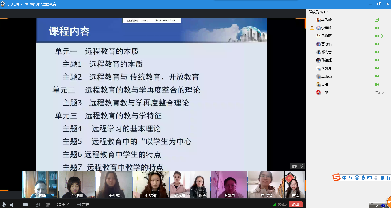 2019级研究生在网络云端相遇,迎来了春季学期的第一课——现代远程教育研究。上午八点,探花