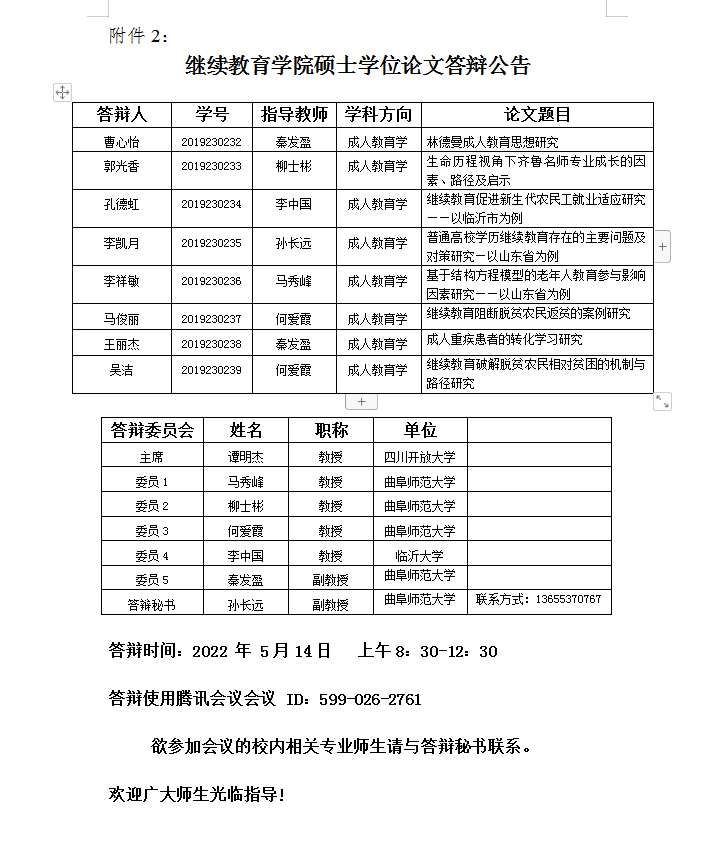 探花 硕士学位论文答辩公告