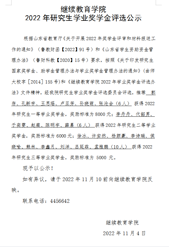 探花 2022年研究生学业奖学金评选公示