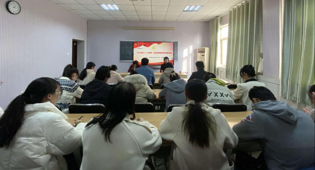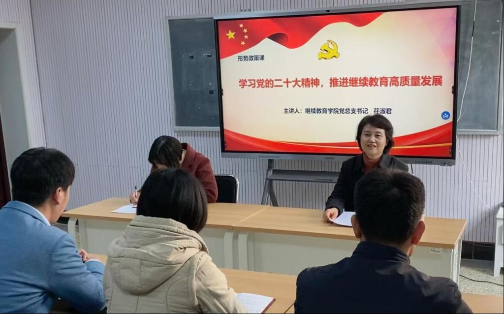 为深入学习宣传党的二十大精神,加强学院师生党性修养,11月18日下午,学院党总支书记茌淑君以“学习党的二十大精神,推进继续教育高质量发展”为题,为探花