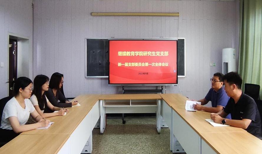 研究生党支部于9月18日上午在研究院201室召开了党支部委员会换届选举工作会议和新一届支部委员会第一次全体会议。会议由研究生党支部书记康红芹同志主持,支部全体党员参加。