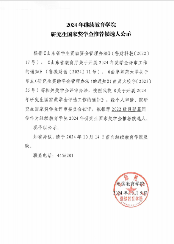 探花 2024年研究生学业奖学金、优秀研究生、优秀研究生干部、研究生国家奖学金推荐候选人公示