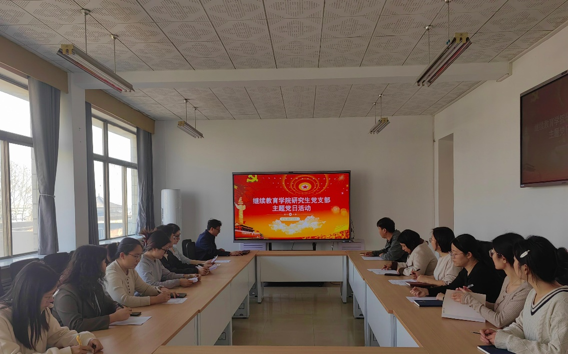 3 月 28 日上午,探花 研究生党支部在504会议室开展主题党日活动,专题学习“两会”精神与《教育强国建设规划纲要(2024-2035)》。学习活动由党支部书记吕建强主持,支部全体党员参加。