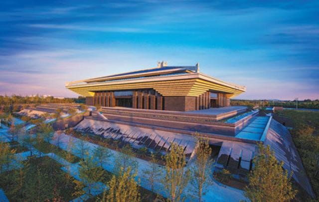孔子博物馆位于曲阜城南北轴线大成路的正南端,与世界遗产三孔遥相呼应,由两院院士吴良镛先生规划设计,于2013年初正式动工,并于2013年底实现主馆封顶,即将建成投入使用。总建筑面积5.5万平方米,其中主馆4.2万平方米,东部平台1.3万平方米。主馆包括展陈面积1.7万平方米、文物库房面积7千平方米、文物修复中心面积1千平方米。该馆是具有时代标杆意义的重大文化工程,是孔子文化的集大成之所,是当代杰作,未来遗产。